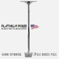 45mm Spinning & Static Pole Dancing Pole - Selectable between the two in moments. Aircraft grade electroplated chrome tubes, fittings and upper and lower mounting plates. Static or spinning on precision bearings, with hidden switches to lock/unlock between spinning and static. The more bearings the better, inferior quality poles on the market only use 3.